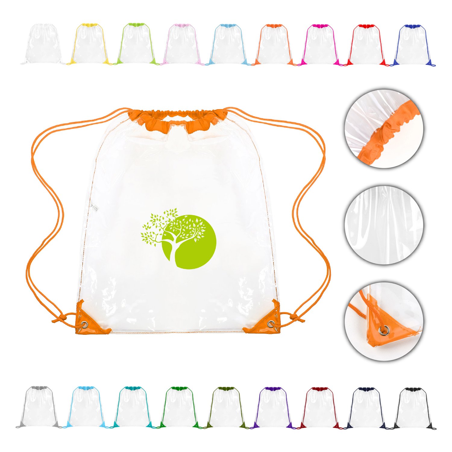 The Clear Cinch Drawstring Backpack is a sturdy and stylish way to carry your essentials. Made from durable clear vinyl with reinforced eyelets, itâs perfect for school, work, or daily travel. Sized at 14″ x 17″, this backpack meets CPSIA and Prop65 safety standards for lead, heavy metals, and phthalates, ensuring reliable use and lasting visibility.