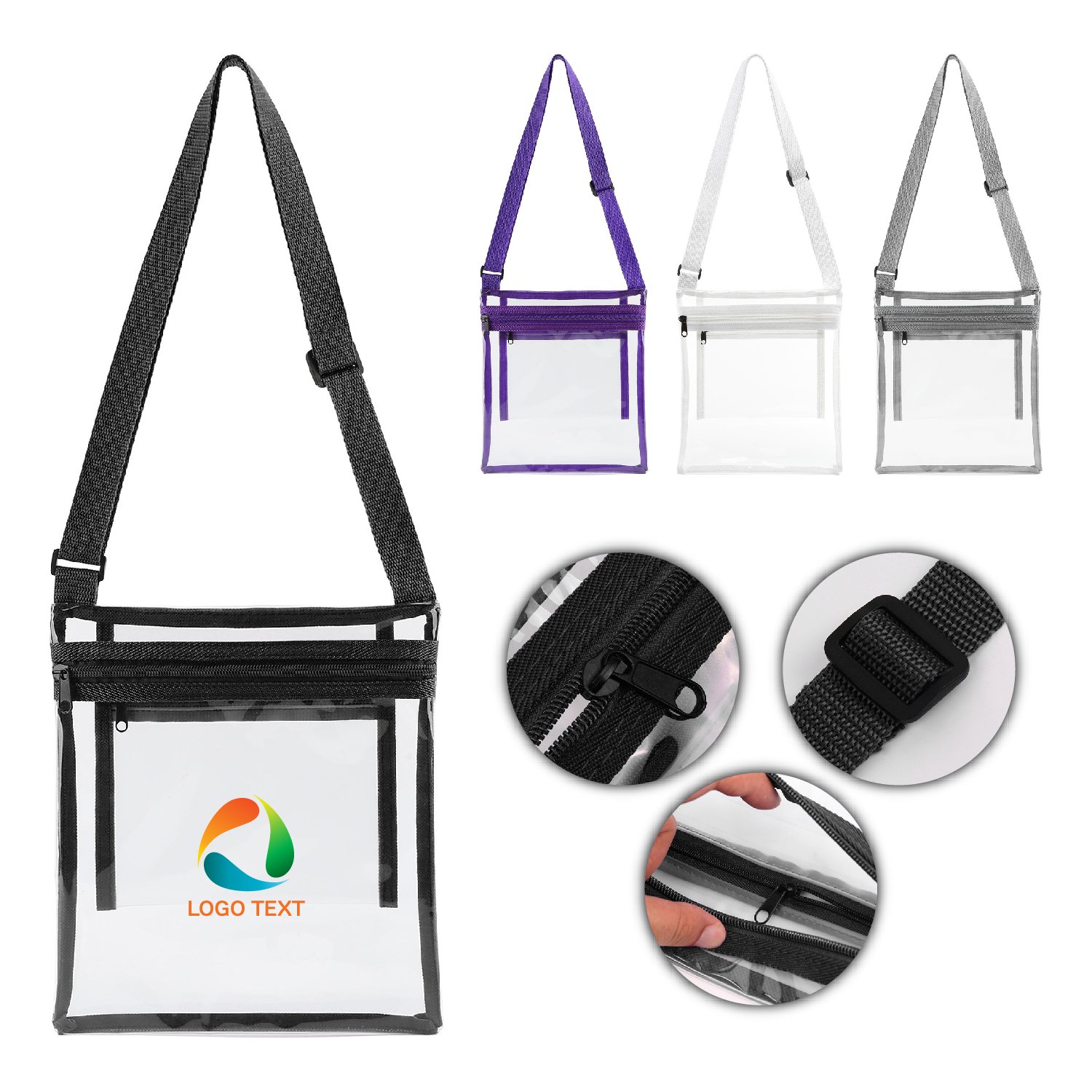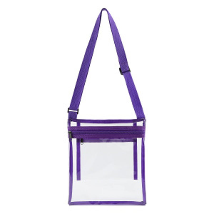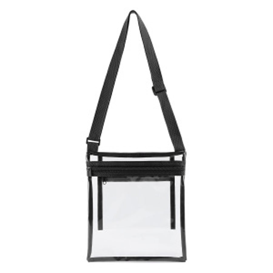 Carry your essentials with ease using the Clear PVC Stadium Crossbody Bag. Made of durable 0.3mm clear PVC, it includes a zippered main compartment and an inner pocket to keep things secure. The adjustable shoulder strap ensures comfort while on the go. Designed for stadiums, concerts, and other high-security venues, it meets standard clear bag policies. Perfect for schools, airports, and workplaces where visibility is keyâadd your logo to keep your brand visible year-round.