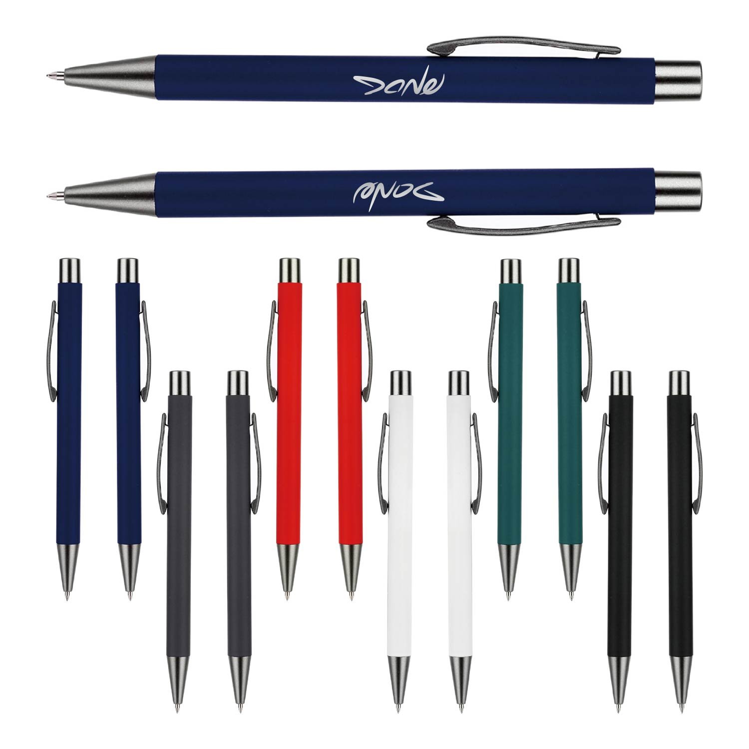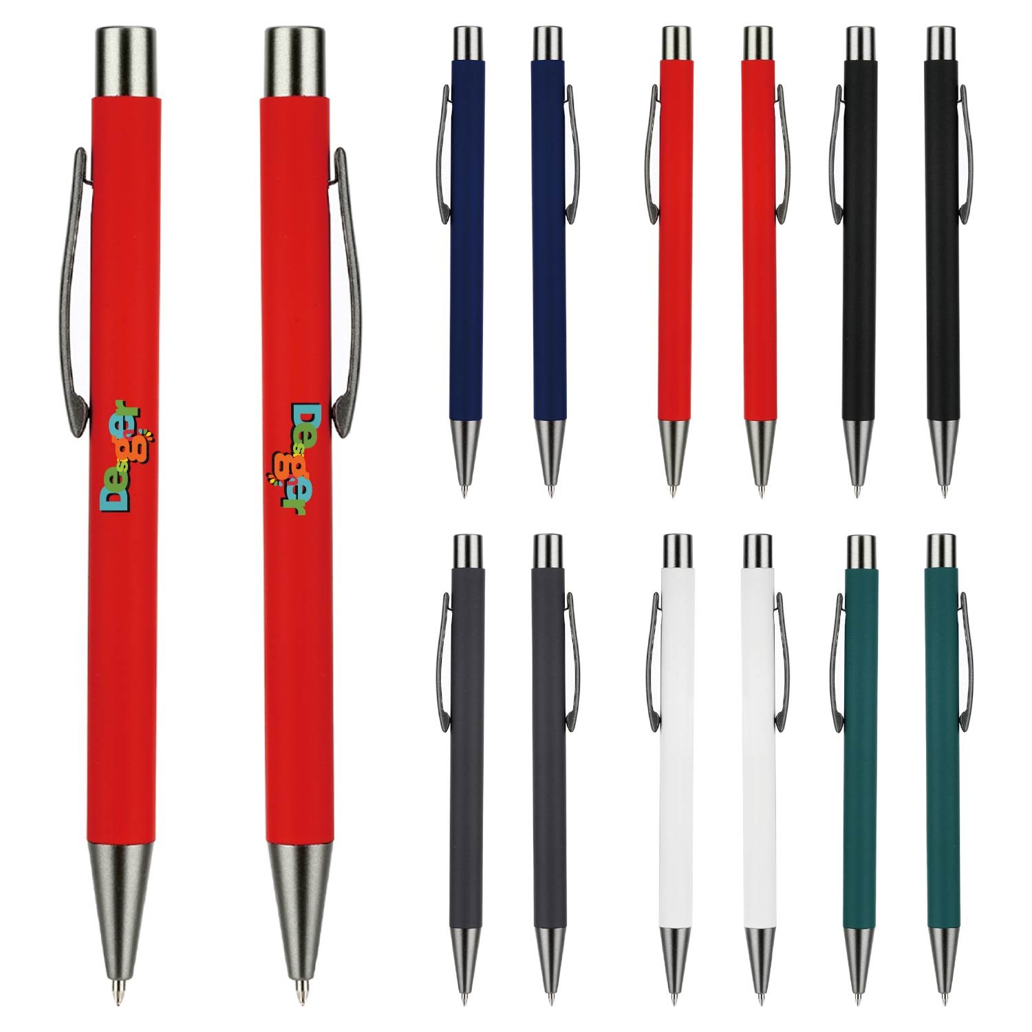 The Custom Rubber Finish Metal Pen features a sleek aluminum barrel with a softâtouch rubberized finish and a medium 1.0â¯mm ballpoint for smooth, comfortable writing in any position. Choose black or blue ink (black default) and customize with fullâcolor ColorJet imprinting or laser engraving to showcase your logo. With multiple barrel color choices and robust construction, itâs ideal for promotional events, corporate branding, and giveaways.