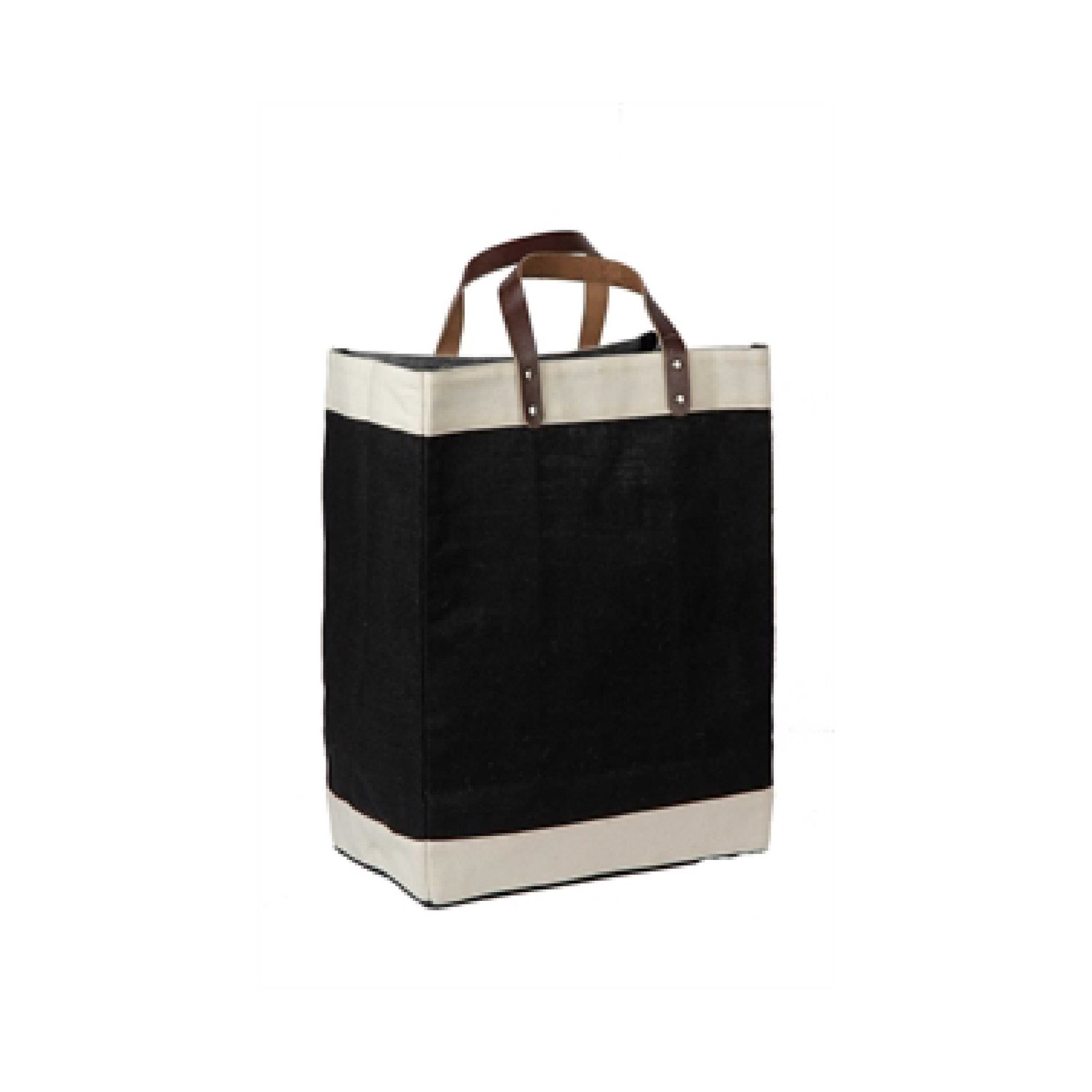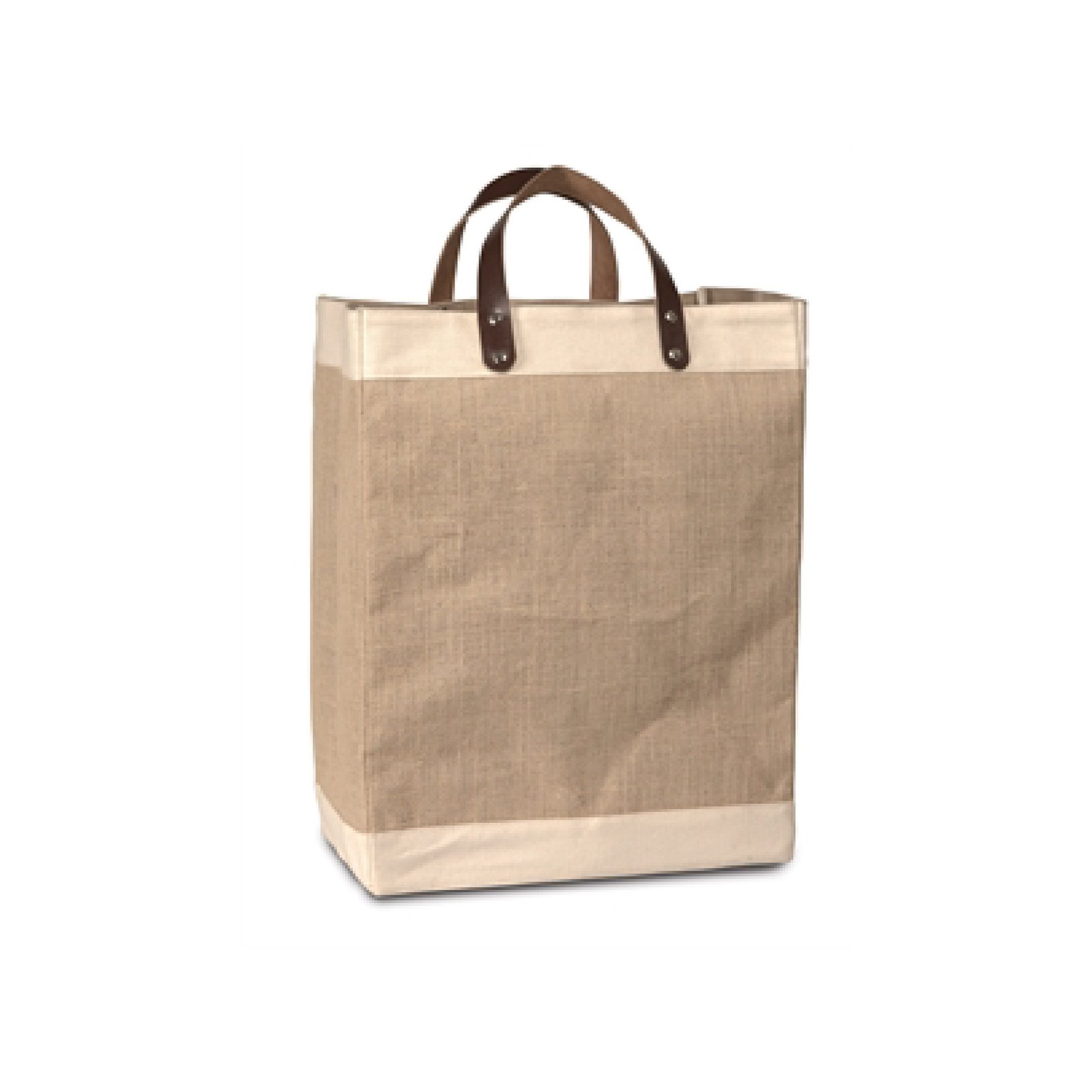 This laminated jute market tote features stylish cotton accents and genuine leather handles, blending elegance with everyday function. Made from 100% organic jute, itâs an eco-friendly, durable option for daily outings, shopping trips, and carrying essentials. A perfect combination of sustainability and sophistication. Dimensions: 13″W x 17″H x 8″ gusset.