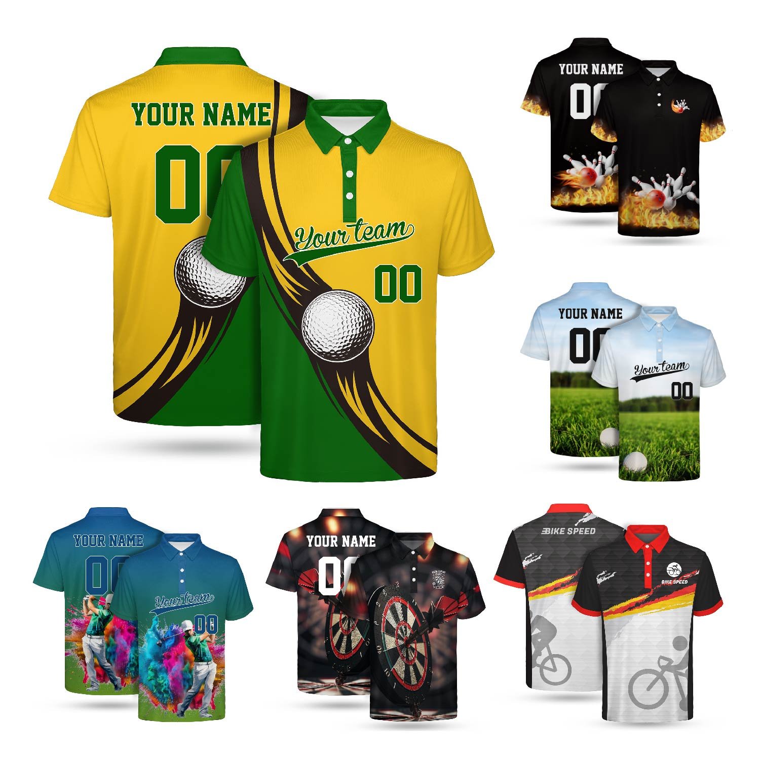 Create your own sublimated short sleeve golf polo featuring team names, logos, player names, and numbers on 100% polyester fabric. This breathable and durable polo includes quick-dry and anti-microbial technology for comfort on the course. It has a classic fit with a 3-button collar and is perfect for sports teams, corporate events, and daily wear. Available in sizes XS through 5XL and complies with Prop 65 standards.